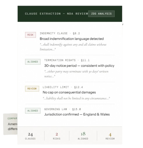 Purpose-built tools that reduce manual review time, surface critical risks, and give legal teams the clarity to act with confidence.